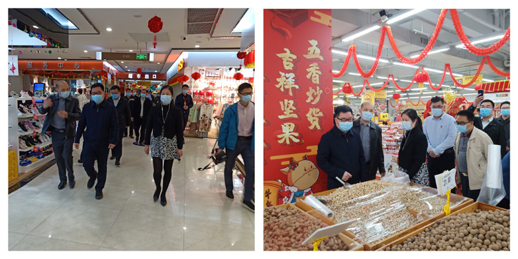黎书记、陈县长首先来到超市入口询问疫情防控情况,并主动要求测温进入超市卖场。扫码督导员向黎书记、陈县长汇报顾客扫码进入流程,黎书记接过话说,春节疫情防控工作非常重要,一定要按照市委、县委的统一部署,具体细节工作落实到每位员工,要求有登记、有测温、有戴口罩、有一米线、重点提示等等。